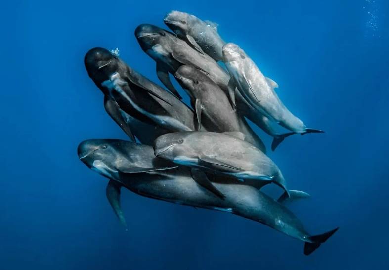 2. Una manada de ballenas piloto posan para un retrato familiar. Fotografía de Rafael Fernandez Caballero, España. /Ocean Photographer of the Year 2022