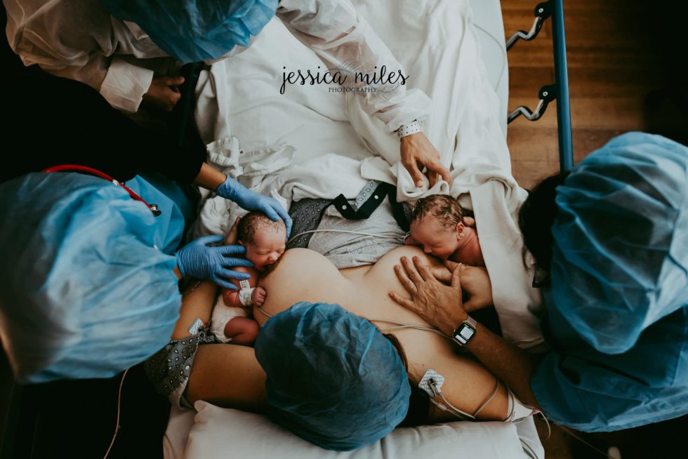 Jessica Miles (Estados Unidos), ha ganado el premio a la Mejor Foto de Posparto 2022 con la imagen ‘Gemelos, primer pestillo’.