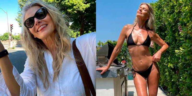 Y es que la modelo luce su belleza real a través de sus redes a sus 57 años, posando al natural, sin maquillaje, mostrando sus arrugas y presumiendo su figura.